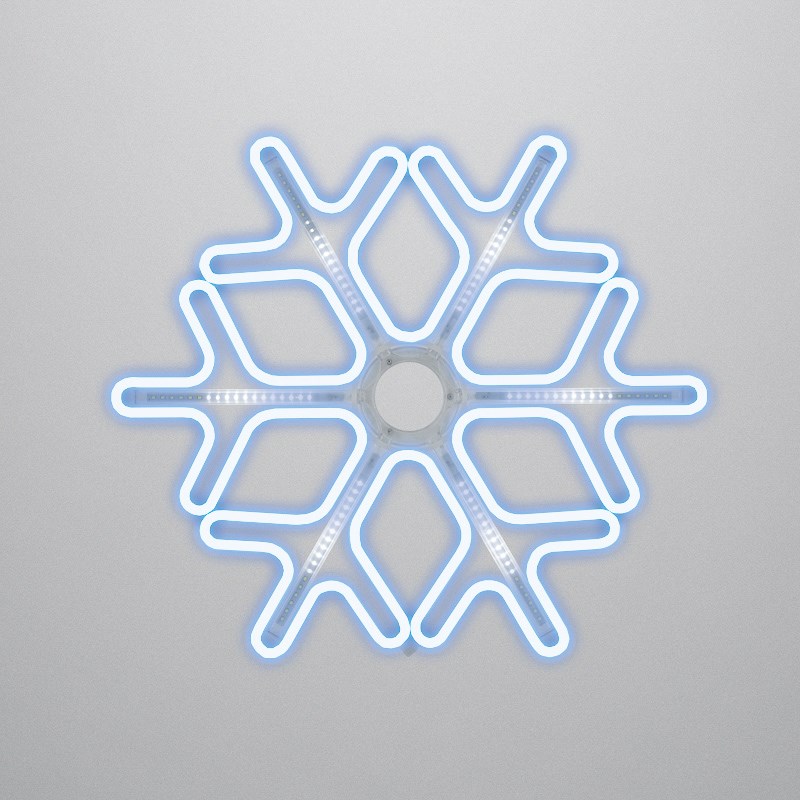 "Снежинка" имеет размер 60x60 см. Цвет свечения синий и белый.