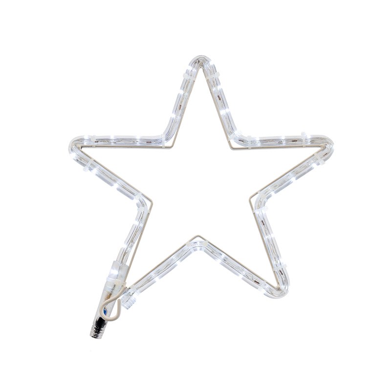 Звезда имеет классическую форму, размер 30*28 см и нейтральное белое свечение 36 светодиодов.