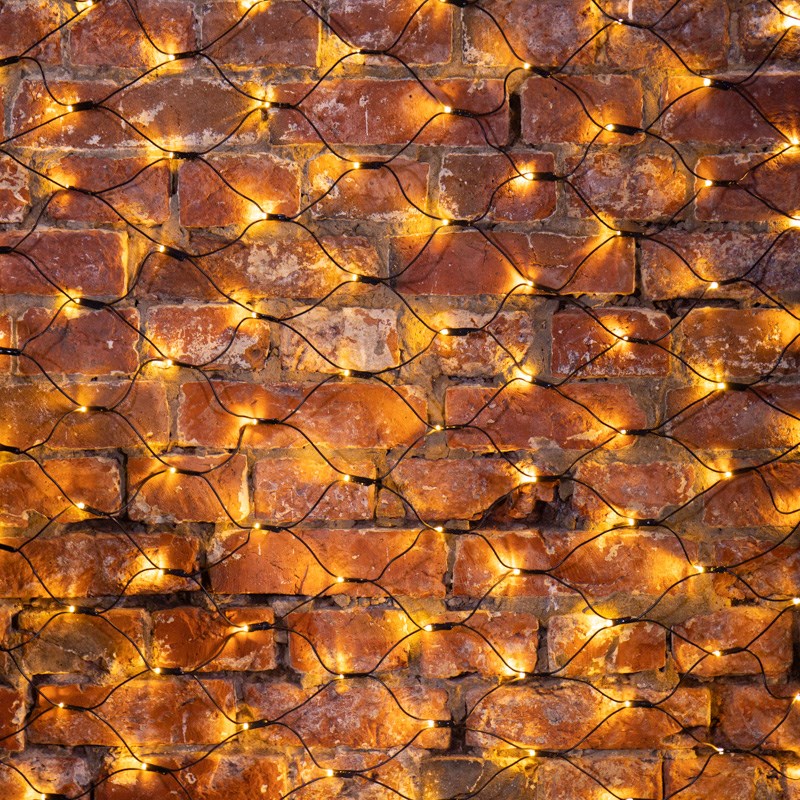Светодиодная гирлянда Сеть выполнена в форме прямоугольника, разделенного на равные ромбы. В углаx этиx ромбов располагаются светодиоды теплого белого цвета.