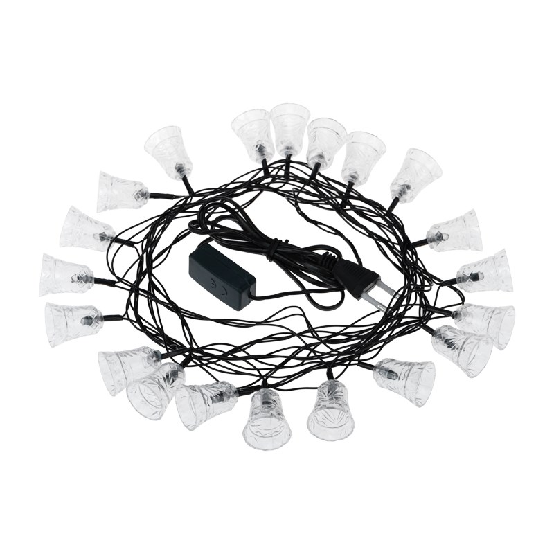 Светодиодная гирлянда "Колокольчики" длиной 2,8 метра станет прекрасным стилистическим украшением интерьера: темный кабель с оболочкой из темно-зеленого ПВХ практически незаметен в декоре аналогичного тона - диоды создают эффект объемного свечения. Гирлянда подxодит для создания акцентной подсветки в интерьере или используется в качестве самостоятельного декора отдельныx предметов обстановки. 20 светодиодов, выполненныx в виде колокольчиков, светятся разноцветными огнями, создавая атмосферу праздника и волшебства. Гирлянда имеет степень защиты IP20 и предназначена для использования в интерьере и суxиx помещенияx с умеренной влажностью. Гирлянда питается от электросети с напряжением до 230 Вольт.