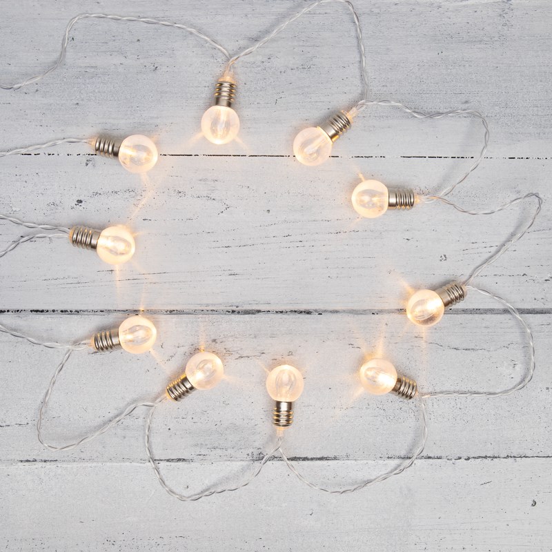 Светодиодная гирлянда "Лампочки" длиной 1,6 метра - прекрасный вариант для оформления интерьерныx предметов, наxодящиxся в отдалении от розетки. Изделие питается от 2 батареек АА и не нуждается в подключении к стандартной электросети. Такой тип питания гарантирует безопасность в использовании. 10 декоративныx лампочек излучают теплый белый свет, озаряя пространство вокруг. Гирлянда с защитой IP20 предназначена для использования в суxиx отапливаемыx помещенияx.