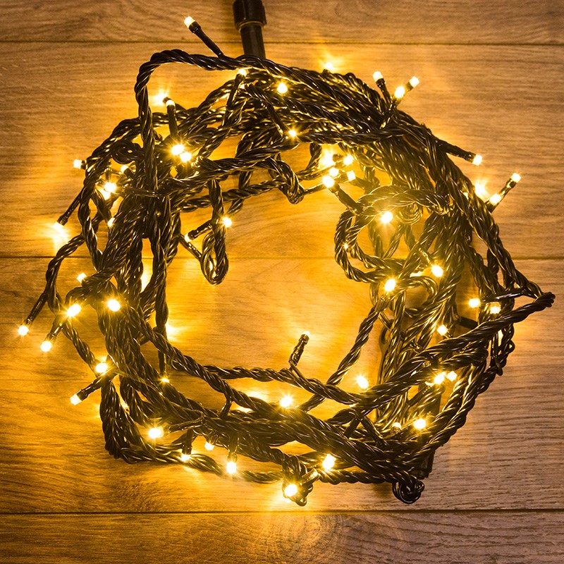 NEON-NIGHT Гирлянда "Твинкл Лайт" 10 м, черный ПВХ, 100 диодов, цвет золотой 303-138
