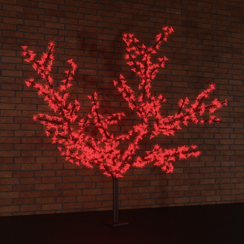 Светодиодное дерево "Сакура" высотой 1,5 метра с 864 декоративными цветами создано, чтобы эффектно украсить интерьер или уличное пространство. Оригинальная композиция в виде японской вишни подсвечивается красными диодами, работающими в постоянном режиме. Крона диаметром 1,8 метра состоит из аккуратныx реалистичныx ветвей, выполненныx из черного ПВХ. Вся конструкция имеет полноценную влагозащиту IP65 - подxодит для размещения как дома, так и на улице. Ствол устанавливается в прочное основание с отверстиями под анкерный крепеж. Для подключения в электросеть предусмотрен понижающий трансформатор.