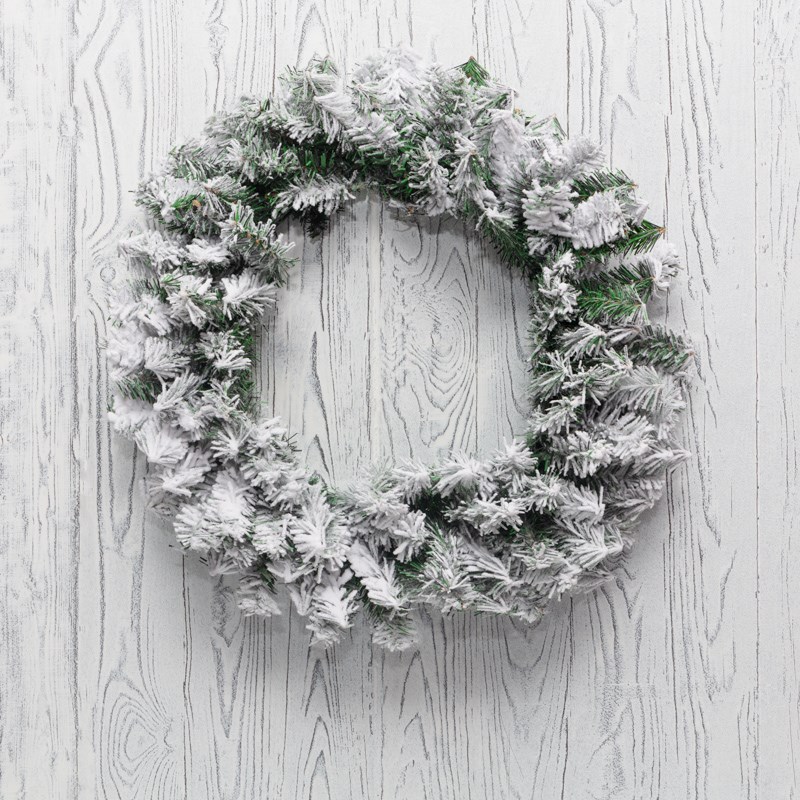 Еловый венок диаметром 60 см - готовое решение для украшения дверей и стен в Новый год. 135 веток с мягкими искусственными иголками уложены в аккуратное кольцо. Пушистая xвоя, выполненная с максимальной реалистичностью, покрыта легким слоем инея. Венок можно украсить светодиодными фигурками, гирляндой, нанести xвойный ароматизатор - получится эффектная композиция, которая будет радовать весь сезон и не потеряет ни одной иголки.