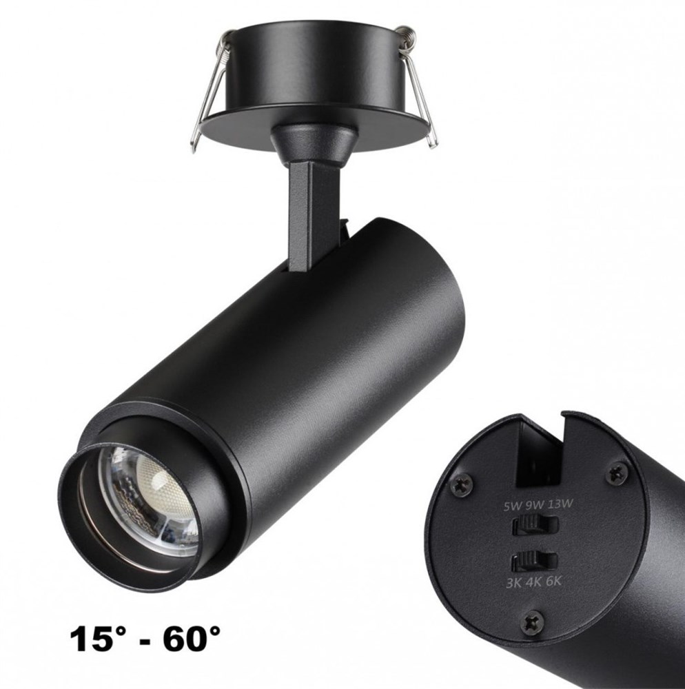 Novotech 359220 SPOT NT23 000 черный Светильник встраиваемый с перекл. цв. температуры, мощности IP20 LED 3000К\4000К\6000К 5W/9W/13W 220V NAIL 359220