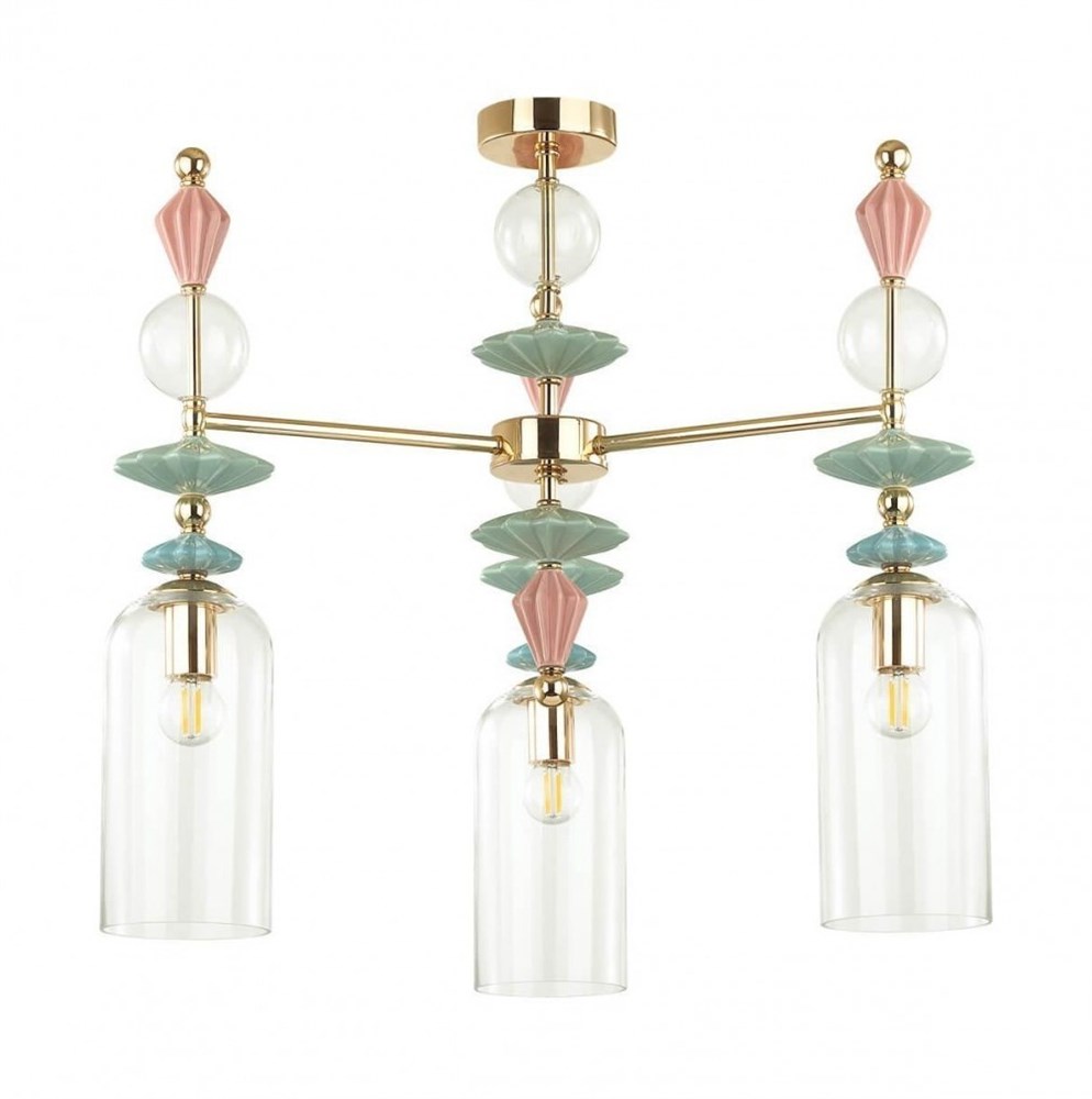 Odeon Light 4855/3C CLASSIC ODL_EX21 золото/раноцветн./керамика/стекло Люстра потолочная E14 3*40W BIZET 4855/3C