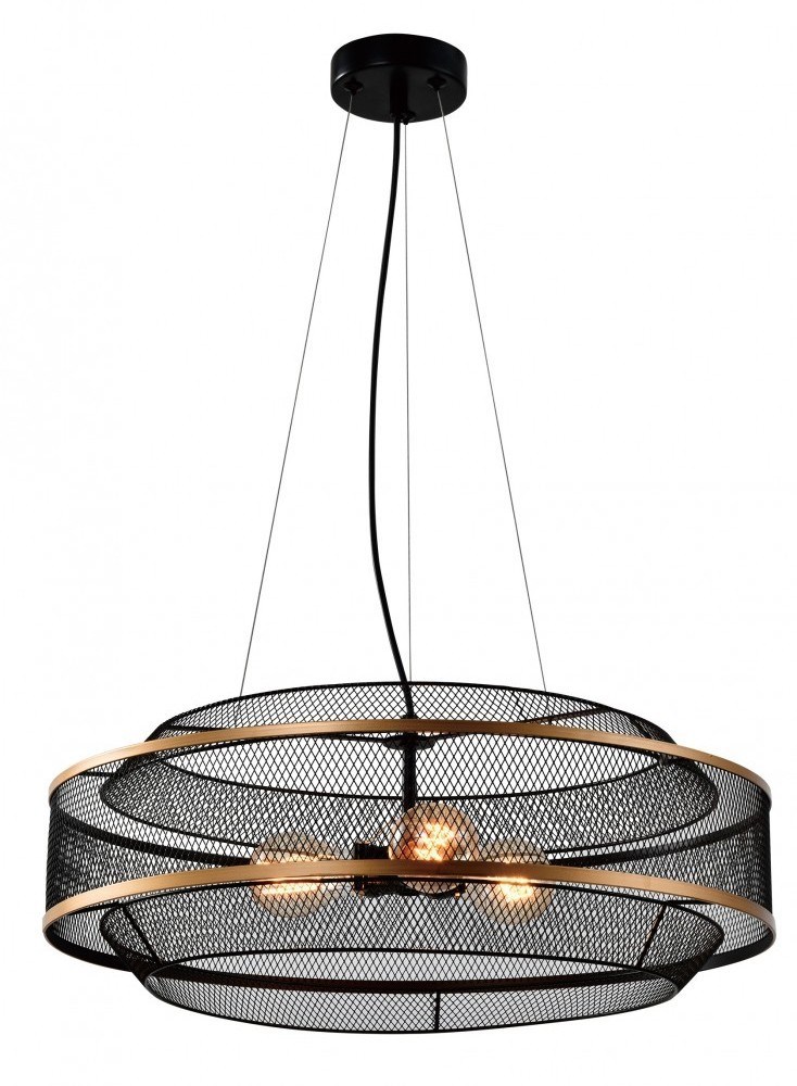 Rivoli Marika - коллекция современных люстр в стиле лофт-кантри. Главная "фишка" - объемный решетчатый абажур из металла. Эффектная мелкая решетка, сочетание матового черного и золотого цветов формируют неповторимый облик светильников Rivoli Marika. Металл имеет стойкое гальваническое покрытие, что защищает светильники потолочные Marika от механических воздействий и выцветания. Металл легкий и прочный. Дизайн создан командой итальянского бренда Rivoli. Коллекцию составляют: светильник потолочный под 1 лампу (арт. 5090-201) и подвесной светильник под 3 лампы (арт. 5090-203). Профессиональные дизайнеры интерьеров выбирают такие светильники для своих проектов. Для вас это готовое решение, чтобы преобразить свой дом. Данная модель - подвесной светильник для высоких или средних потолков. Высота подвеса регулируется при монтаже. Применяется с 3 лампами Е27 40 Вт. Освещает 9 м². Купить этот металлический светильник стоит на кухню, в гостиную. Хорошо смотрится над столом.