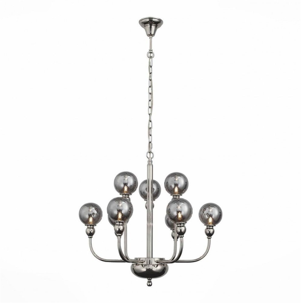 SL552.103.09 Люстра подвесная ST-Luce Никель/Дымчатый G9 9*28W; Длина – -; Ширина – -; Высота – 530; Диаметр - 680; Высота с цепью – 1100