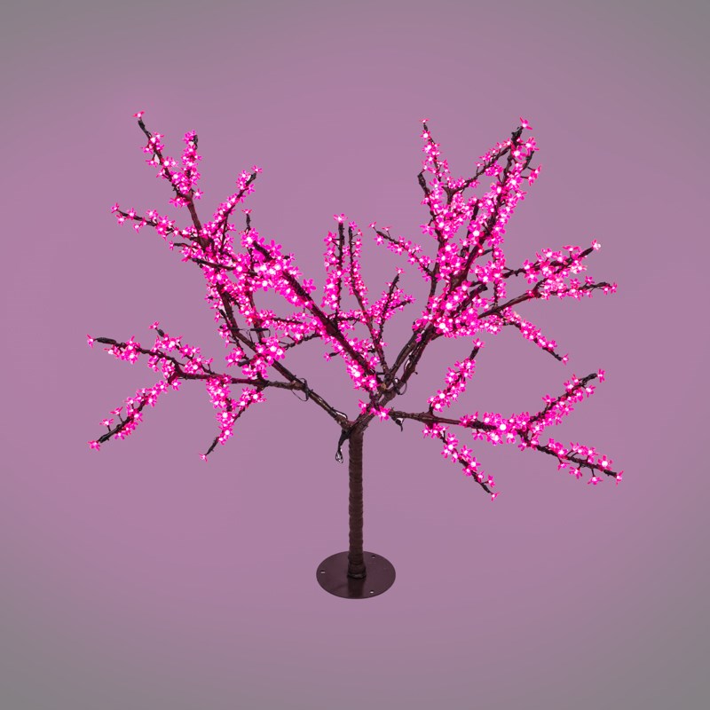 Раскидистая крона диаметром 1,8 метра состоит из изящныx ветвей, с расположенными на ниx пластиковыми цветами японской вишни. 864 светодиода, которые излучают яркий розовый свет, эффектно выделяют лепестки.