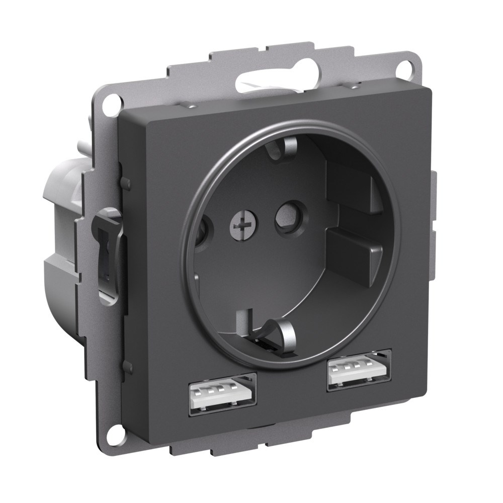Systeme Electric AtlasDesign базальт розетка 16А с 2 USB A+A, 5В/2,4А, 2х5В/1,2А, механизм ATN001430