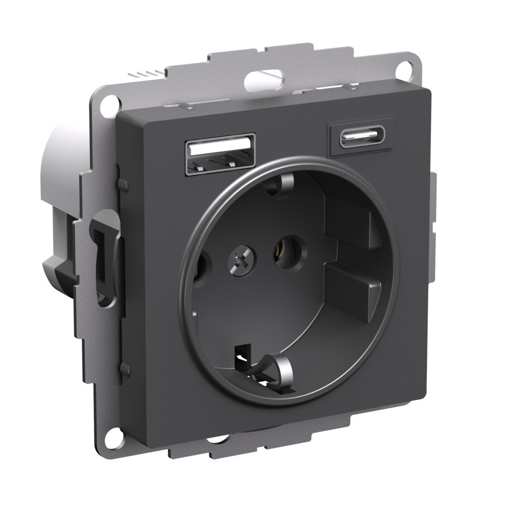 Розетка силовая Systeme Electric (ранее Schneider Electric) серии AtlasDesign 16А (цвет БАЗАЛЬТ) с заземлением и шторками с розеткой USB, с двумя разъемами тип А и тип С. Розетка совмещает в себе сразу 3 функции в одном изделии. Удобное и современное решение для дома, офиса и других помещений. - Лицевые детали из качественного ABS-пластика, устойчивого к царапинам и УФ-излучению. - Заземляющий контакт обеспечивает дополнительную защиту от удара электрическим током. - Шторки обеспечивают дополнительную безопасность в доме, где находятся дети. - Одно устройство позволяет как подключить бытовые приборы, так и зарядить мобильные устройства.