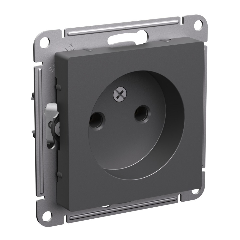 Механизм Systeme Electric (ранее Schneider Electric) серии AtlasDesign в цвете БАЗАЛЬТ розетки одинарной без заземления и без шторок подходит для сетей 250 В, на ток 16 А. - Лицевые детали из качественного ABS-пластика, устойчивого к царапинам и УФ-излучению. - Усиленные прямые монтажные лапки для лучшей фиксации механизма в монтажной коробке.