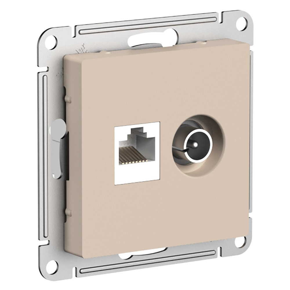 Механизм Systeme Electric (ранее Schneider Electric) серии AtlasDesign в цвете ПЕСОЧНЫЙ двойной розетки разъёмами RJ45 категория 5е и TV предназначен для удобного и быстрого подключения вашего компьютера и телевизора к соответствующим сетям. - Лицевые детали из качественного ABS-пластика, устойчивого к царапинам и УФ-излучению. - Усиленные прямые монтажные лапки для лучшей фиксации механизма в монтажной коробке.