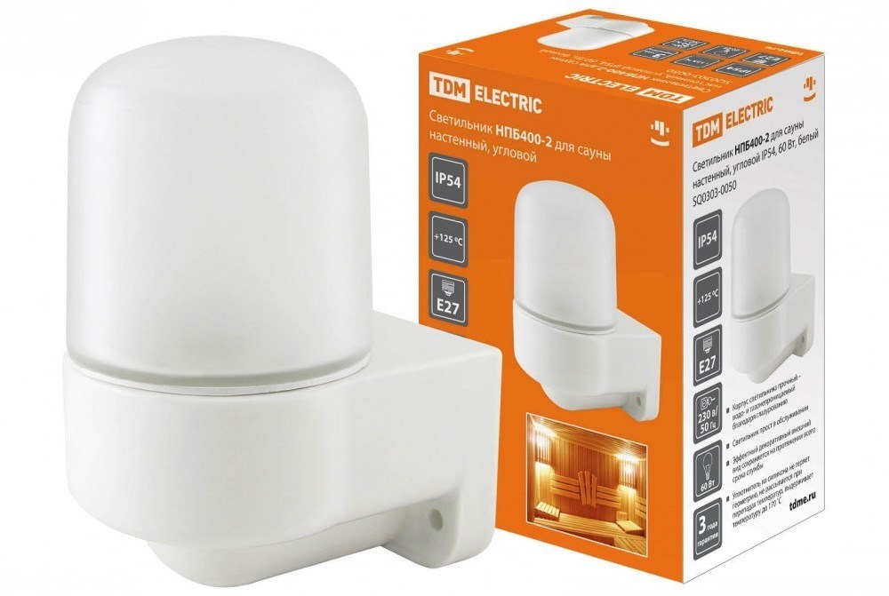 TDM Белый Светильник НПБ400-2 для сауны настенный, угловой, IP54, 60Вт SQ0303-0050
