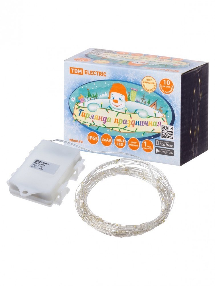 TDM Гирлянда светодиодная "Роса100" 100LED, 10м, 3000К, 3хАА, наружное использование, IP65, SQ0361-0058