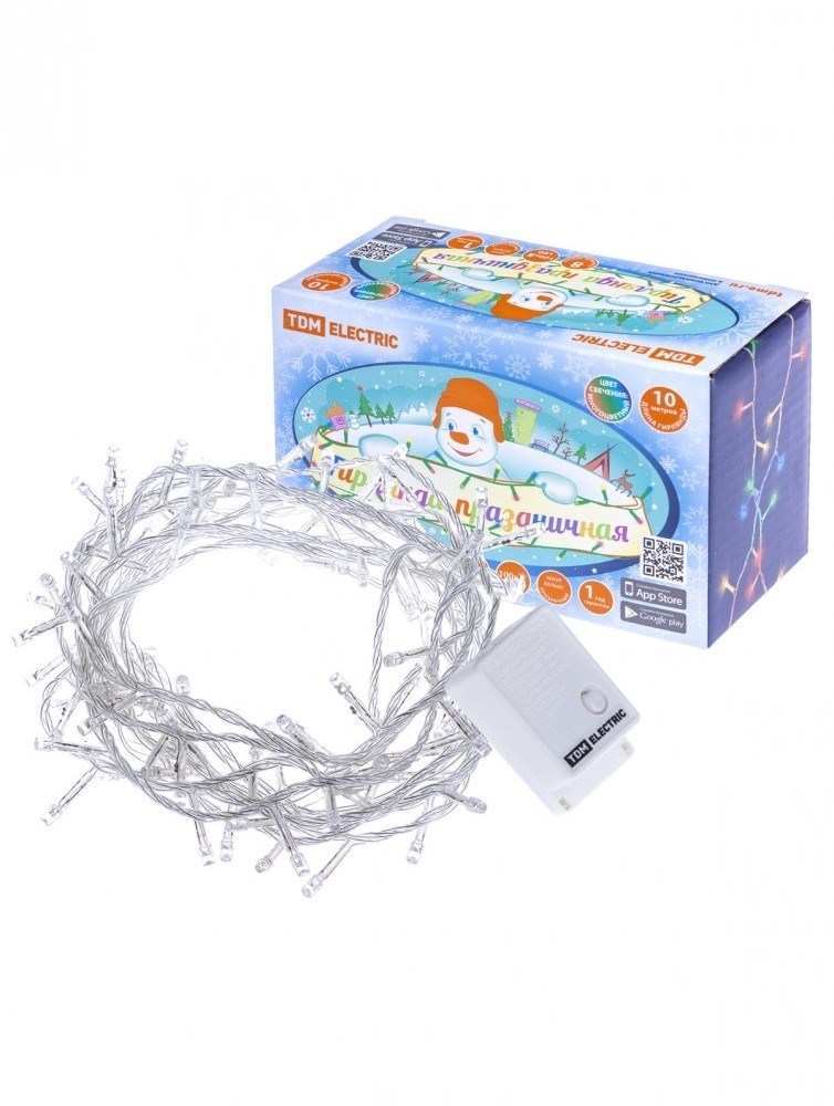 TDM Гирлянда светодиодная СГ100M10, многоцвет., 10м, 8 режимов, 250 В, SQ0361-0037