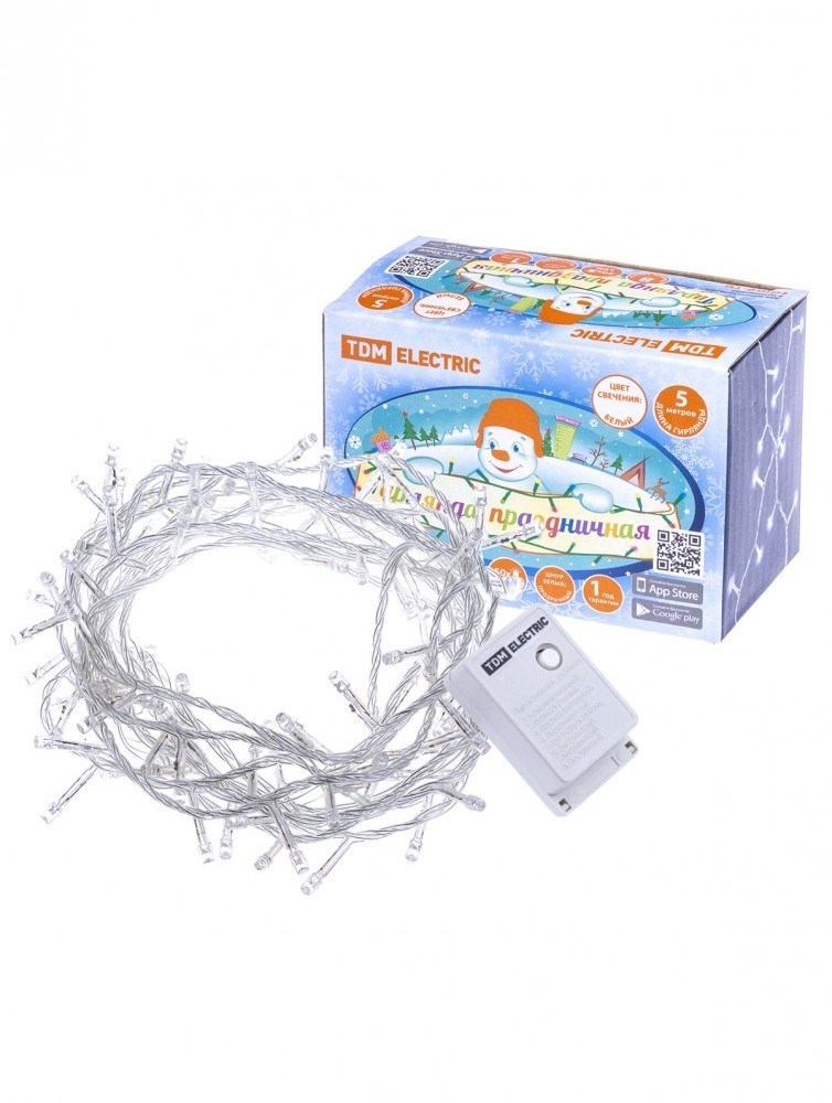 TDM Гирлянда светодиодная СГ50Б5, белая, 5м, 8 режимов, 250 В, SQ0361-0038