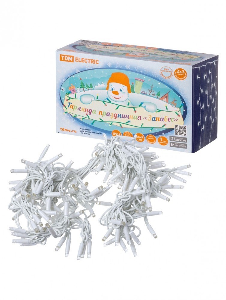 TDM Гирлянда светодиодная "Занавес" 2х3м, 600LED, 6500К, бел. шнур, посл. подкл, IP65, 250 В, SQ0361-0045