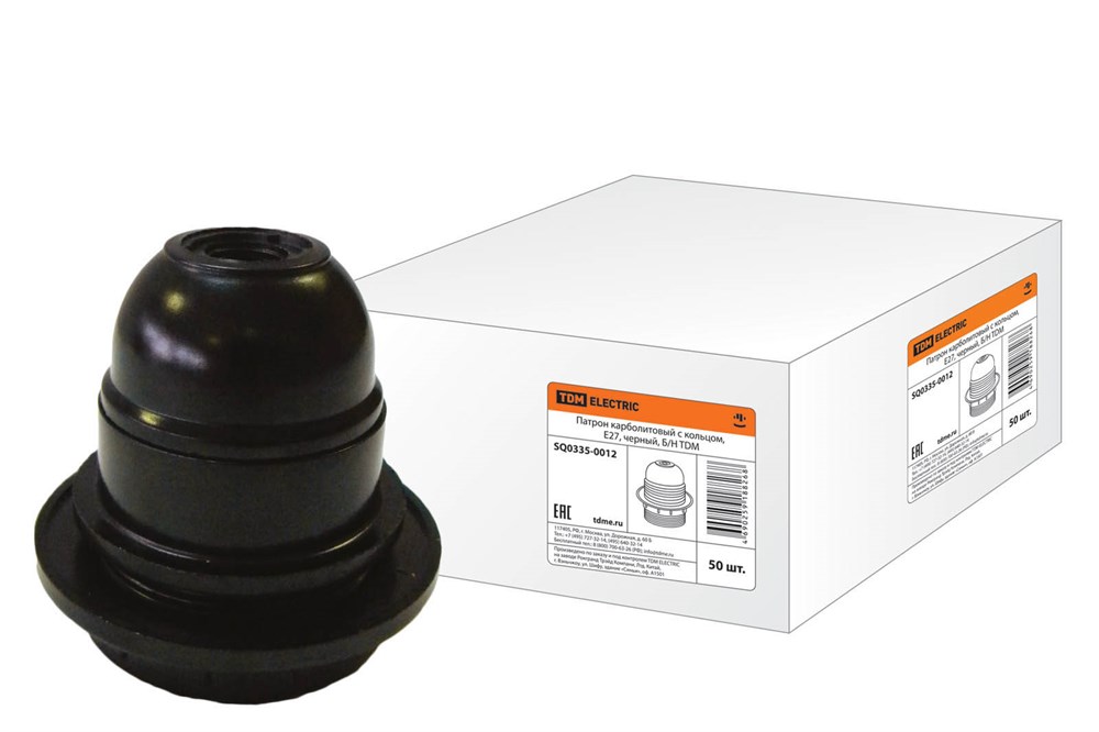 TDM Патрон карболитовый с кольцом, Е27, черный, Б/Н SQ0335-0012