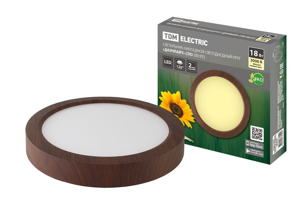TDM Светильник накладной светодиодный круг "Даунлайт" СПО (венге) 18 Вт 225*32 мм 3000К SQ0329-0416