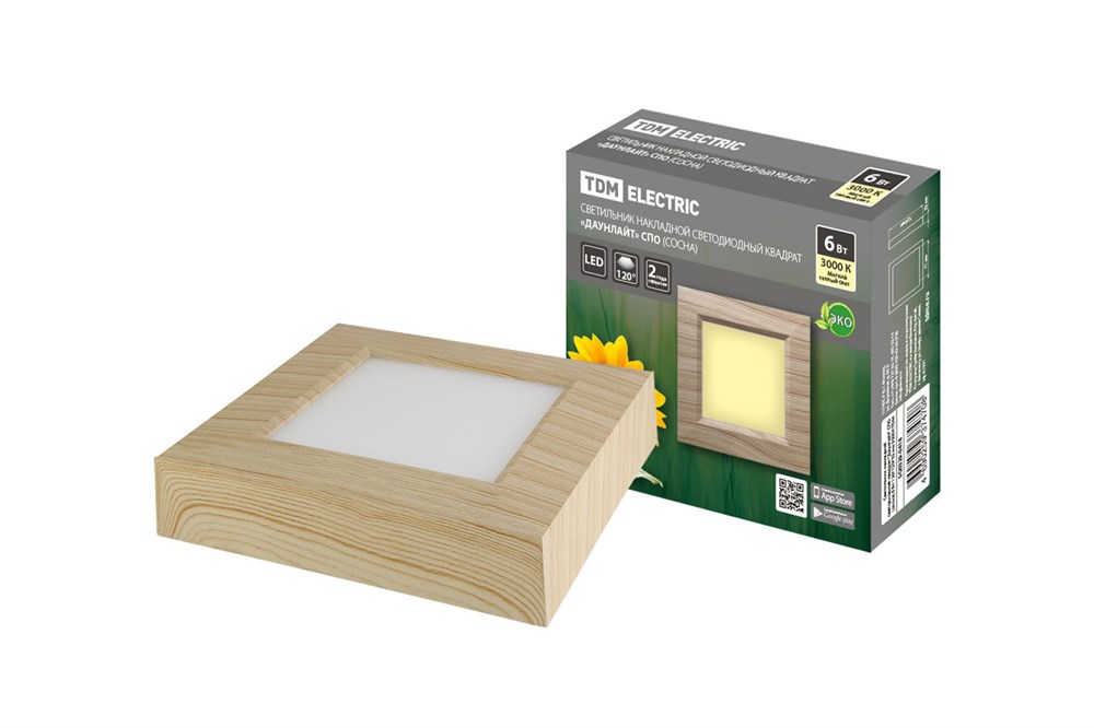 TDM Светильник накладной светодиодный квадрат "Даунлайт" СПО (сосна) 6 Вт 120*120*32 мм 3000К SQ0329-0418