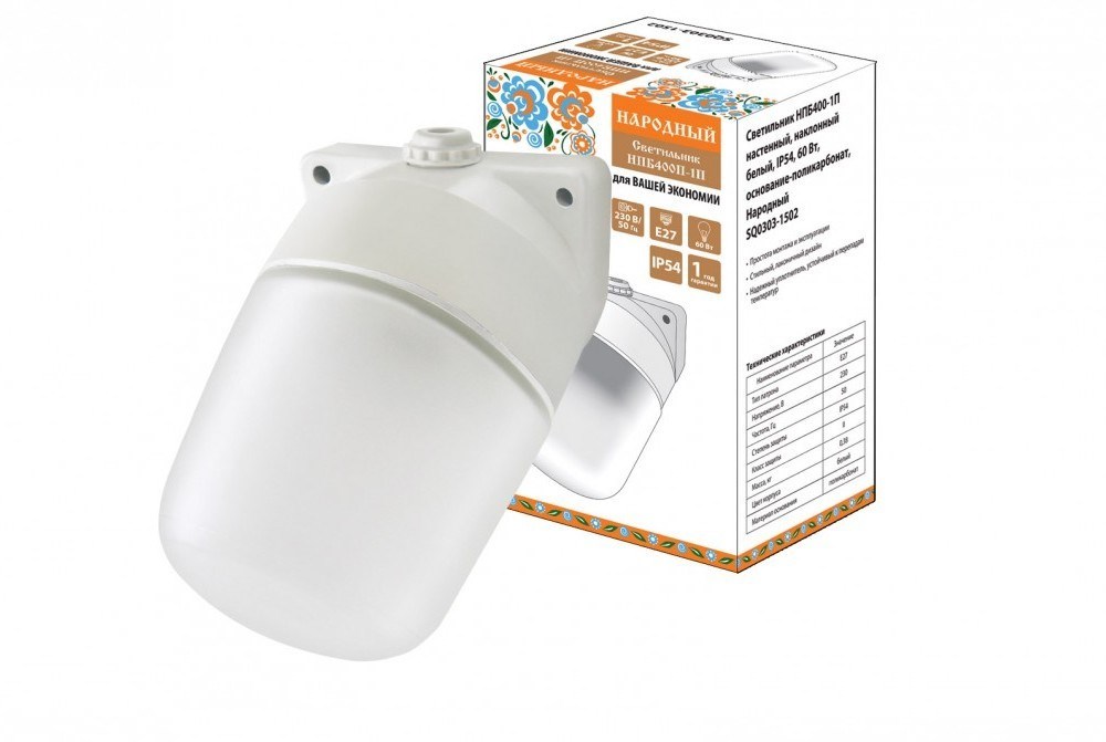 TDM Светильник настенный НПБ400-1П, IP54, 60 Вт, наклонный белый, основание-поликарбонат, народный SQ0303-1502