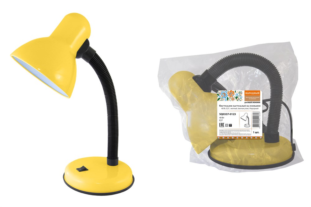 TDM Светильник настольный на основании 40Вт, E27, желтый, (мягкая упак.) Народный SQ0337-0123