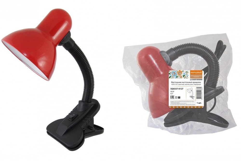 TDM Светильник настольный прищепка 40Вт, E27, красный, (мягкая упак.) Народный SQ0337-0127