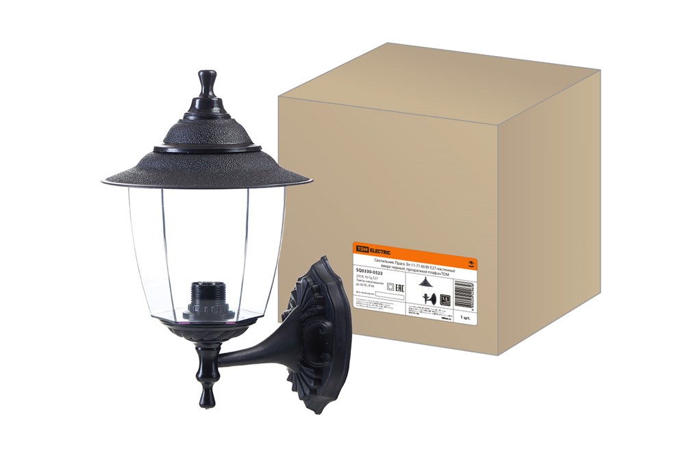 TDM Светильник Прага Эл-11-71 60 Вт Е27 настенный вверх черный, прозрачный плафон SQ0330-0522