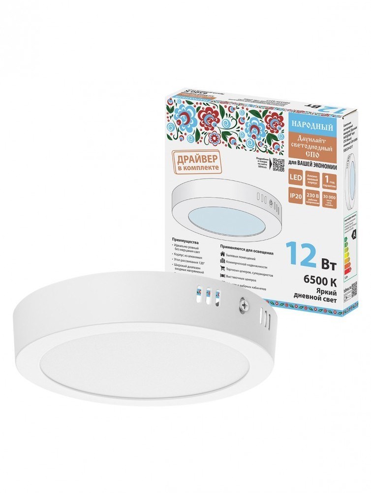 TDM Светильник светодиодный накладной "Даунлайт НАРОДНЫЙ" круг СПО (белый) алюминий 12Вт 6500К SQ0329-4217
