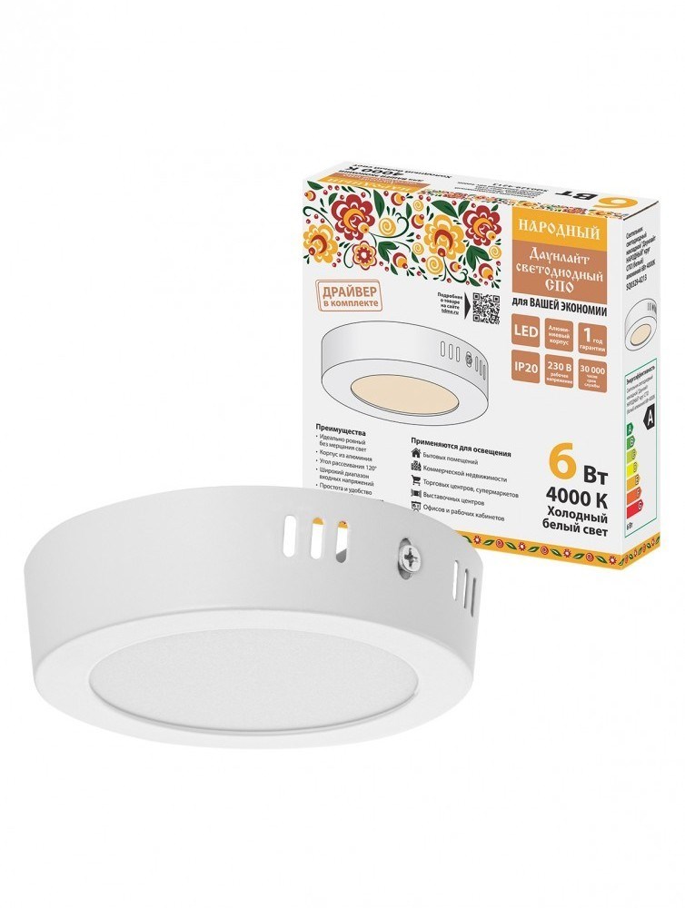 TDM Светильник светодиодный накладной "Даунлайт НАРОДНЫЙ" круг СПО (белый) алюминий 6Вт 4000К SQ0329-4213