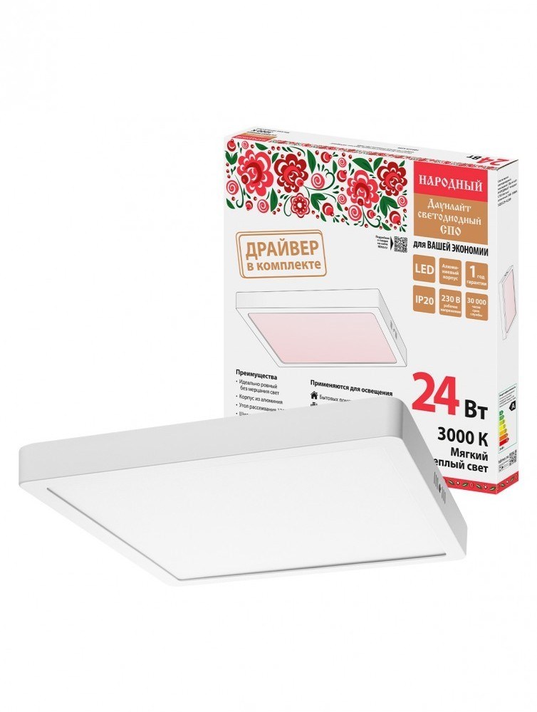 TDM Светильник светодиодный накладной "Даунлайт НАРОДНЫЙ" квадрат СПО (белый) алюминий 24Вт 3000К SQ0329-4209