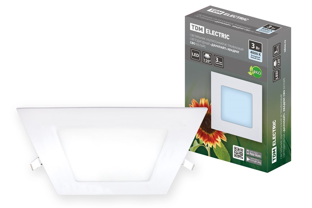 TDM Светильник ультратонкий встраиваемый светодиодный "Даунлайт" квадрат СВО (белый) 3 Вт 4000К SQ0329-0116