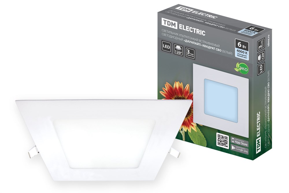 TDM Светильник ультратонкий встраиваемый светодиодный "Даунлайт" квадрат СВО (белый) 6 Вт 4000К SQ0329-0120