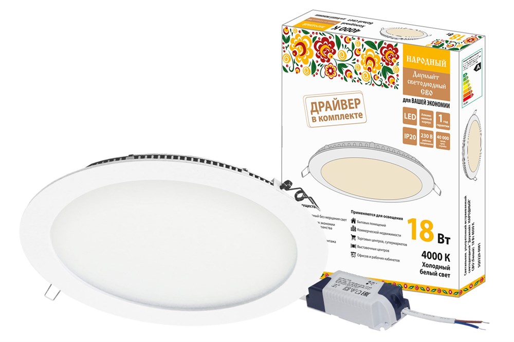 TDM Светильник ультратонкий встраиваемый светодиодный "Даунлайт НАРОДНЫЙ" СВО (белый) 18 Вт 4000К SQ0329-0081