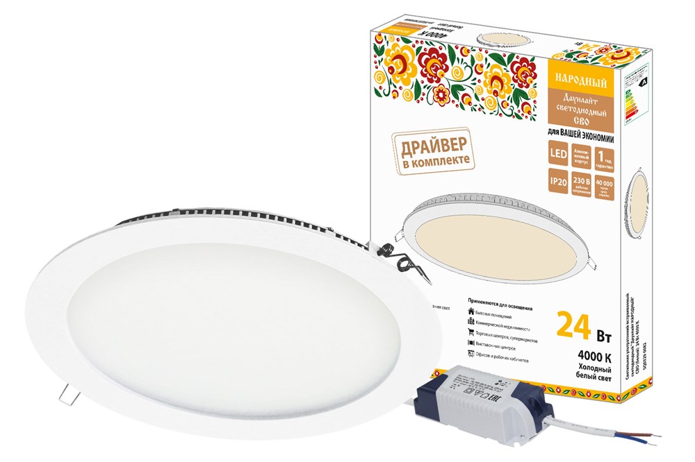 TDM Светильник ультратонкий встраиваемый светодиодный "Даунлайт НАРОДНЫЙ" СВО (белый) 24 Вт 4000К SQ0329-0082