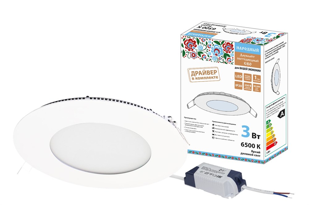 TDM Светильник ультратонкий встраиваемый светодиодный "Даунлайт НАРОДНЫЙ" СВО (белый) 3 Вт 6500К SQ0329-0545