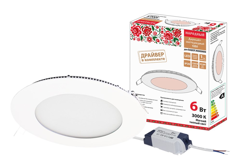 TDM Светильник ультратонкий встраиваемый светодиодный "Даунлайт НАРОДНЫЙ" СВО (белый) 6 Вт 3000К SQ0329-0094