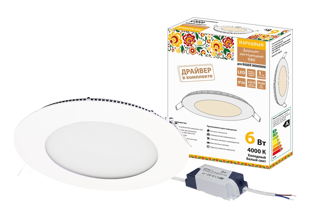 TDM Светильник ультратонкий встраиваемый светодиодный "Даунлайт НАРОДНЫЙ" СВО (белый) 6 Вт 4000К SQ0329-0059