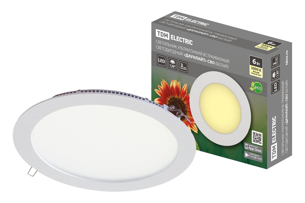 TDM Светильник ультратонкий встраиваемый светодиодный "Даунлайт" СВО (белый) 6 Вт 3000К SQ0329-0027