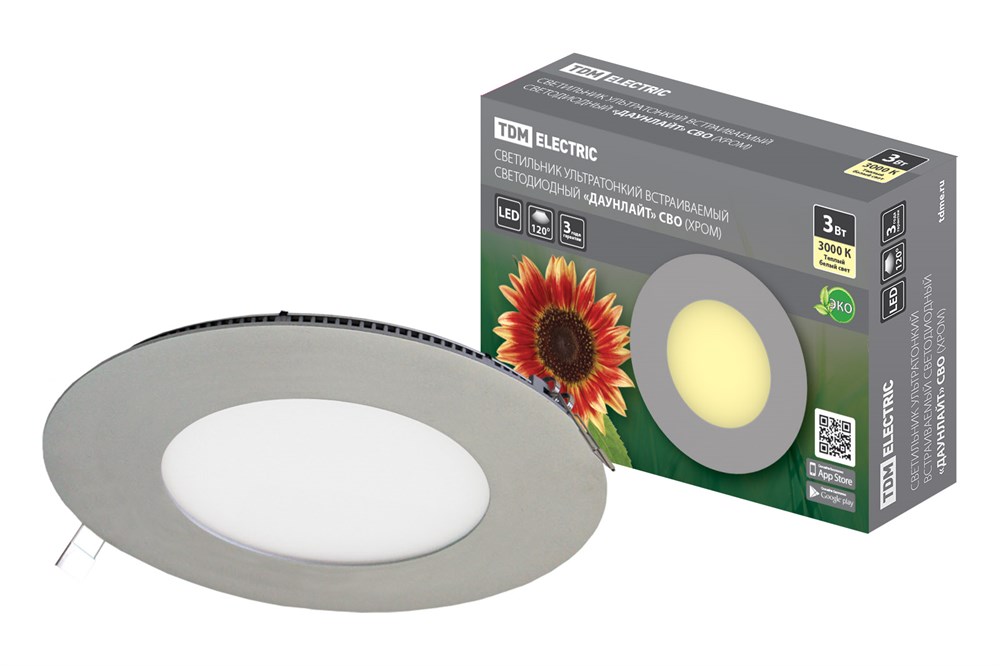 TDM Светильник ультратонкий встраиваемый светодиодный "Даунлайт" СВО (хром) 3 Вт 3000К SQ0329-0106