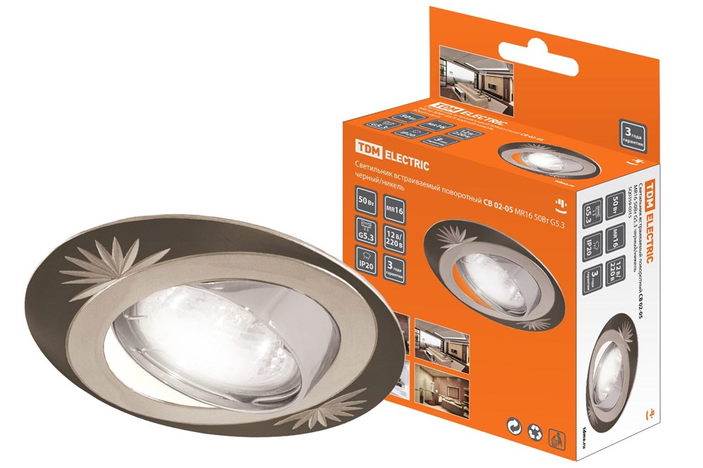 TDM Светильник встраиваемый поворотный СВ 02-05 MR16 50Вт G5.3 чёрный/никель SQ0359-0015
