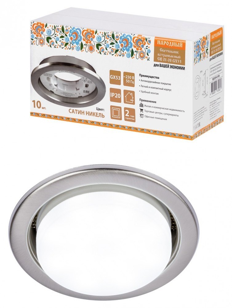 TDM Светильник встраиваемый СВ 01-08 GX53 220 В 50 Гц, сатин никель, 10 шт/уп, Народный SQ0359-0108