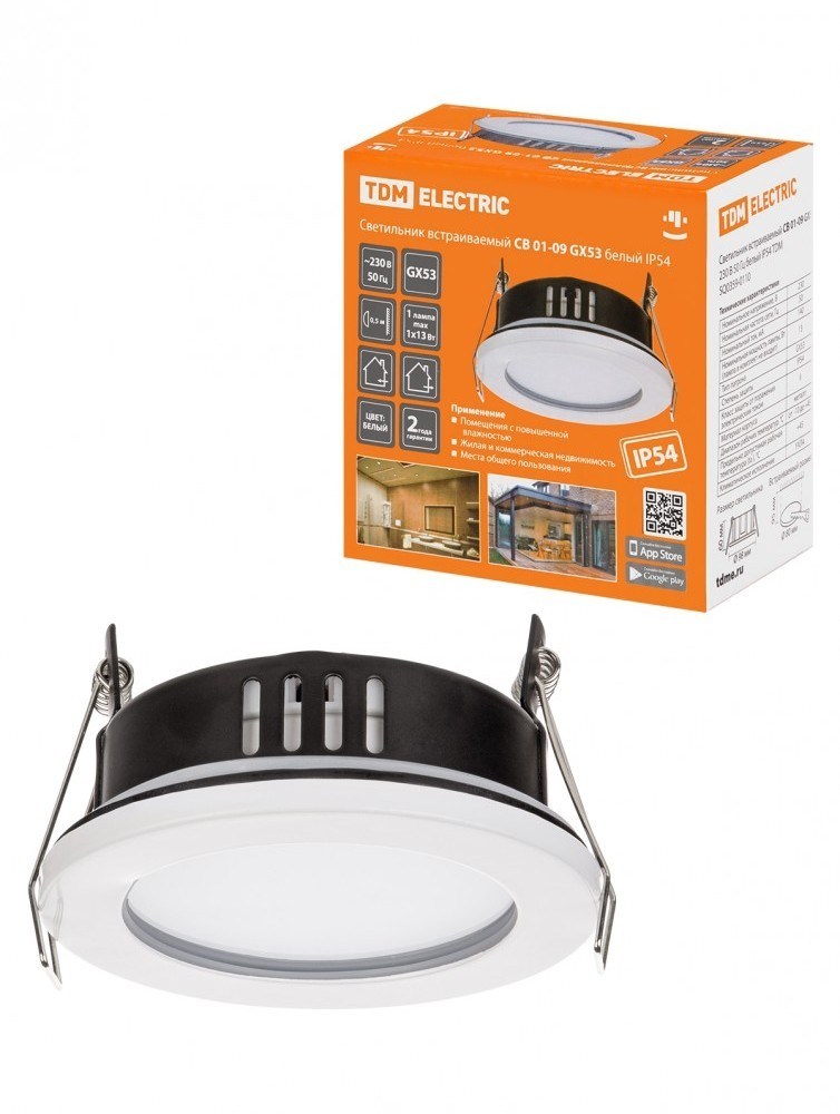 TDM Светильник встраиваемый СВ 01-09 GX53 230 В 50 Гц белый IP54 SQ0359-0110