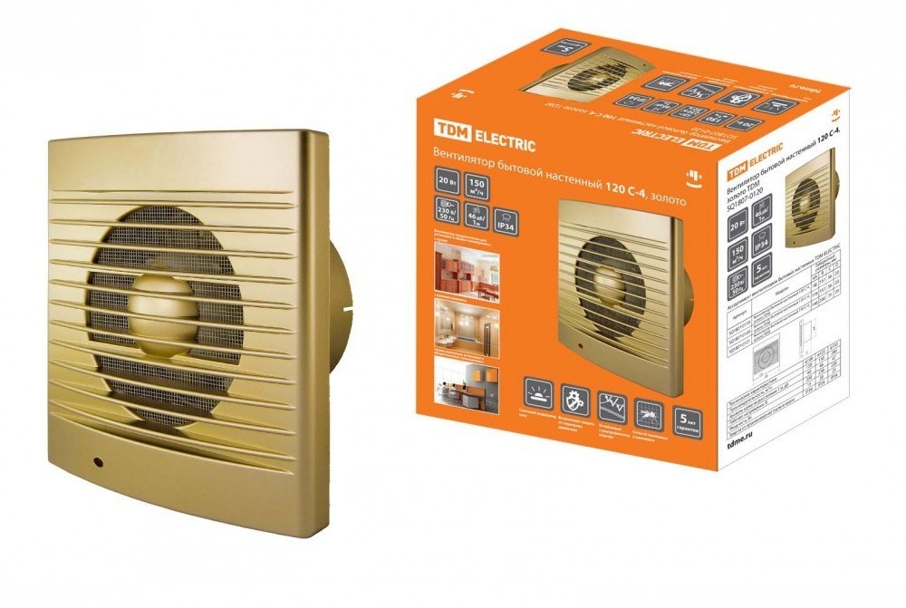 TDM Вентилятор бытовой настенный 120 С-4, золото SQ1807-0120