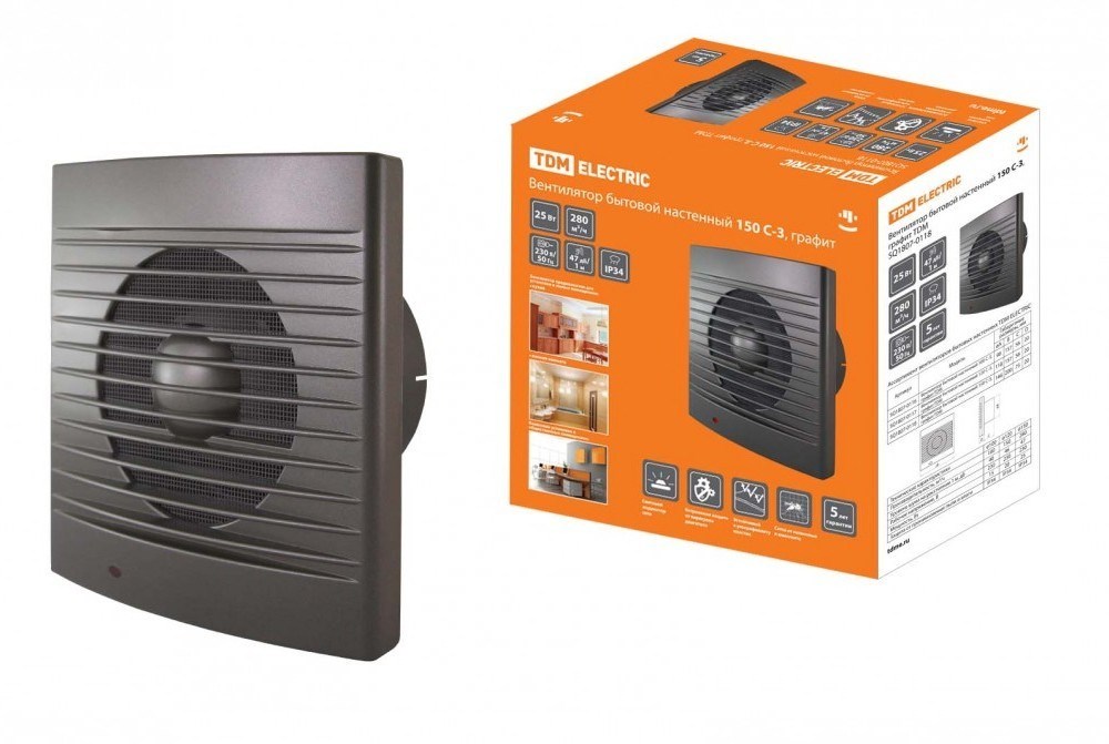 TDM Вентилятор бытовой настенный 150 С-3, графит SQ1807-0118