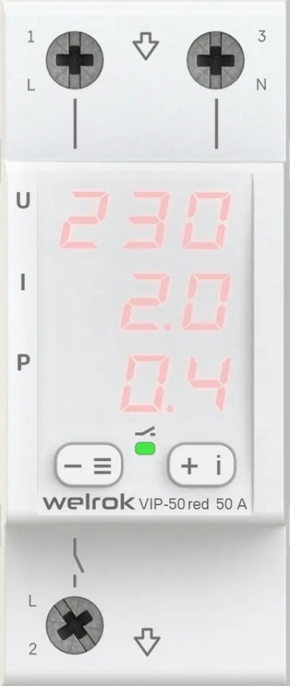 Welrok VIP-50 red Реле напряжения 50 А (max 60 A), 11 000 ВА 4660251140328